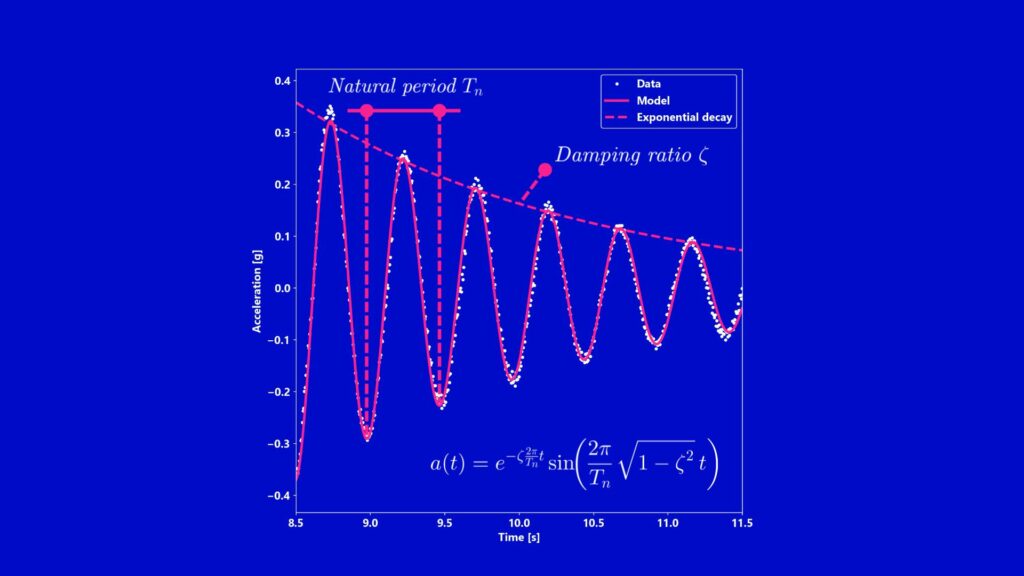 - The app measures the decay of that oscillation to determine the natural period and damping ratio